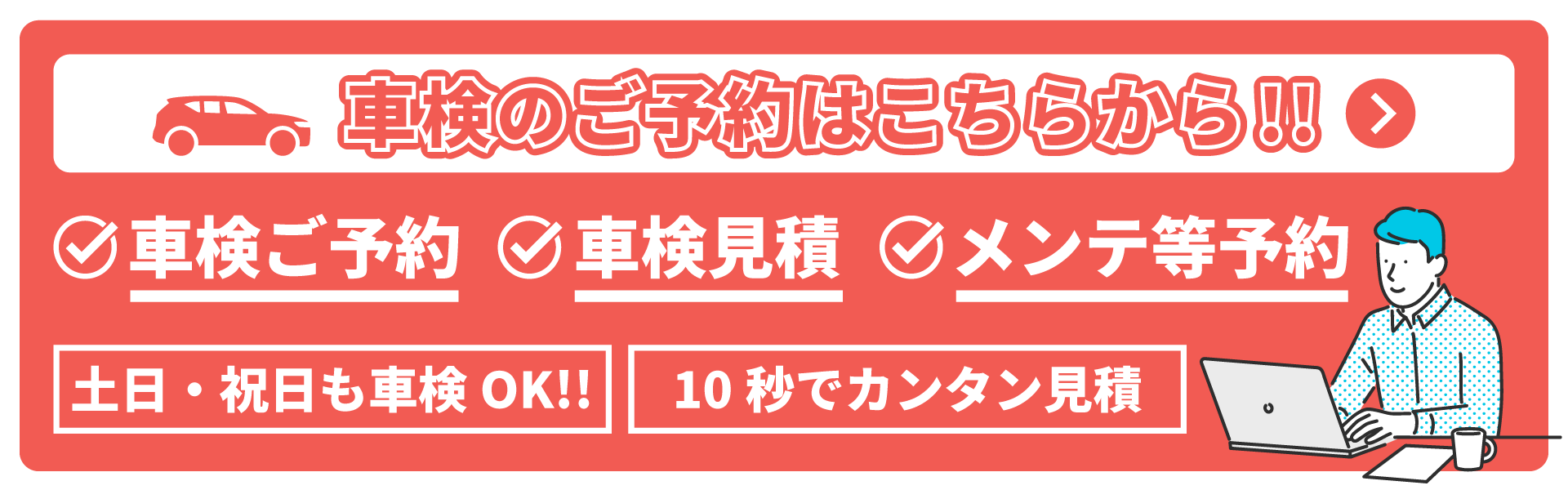 国家資格を持つ確かな技術を持った整備士が2名体制で、お客様の大切な愛車を隅々までしっかりと検査致します。車検専門店ならではの充実した設備と、長年培ってきた経験による安心・安全・高品質な車検をお約束します。また予約制により待たずに入庫することが可能です!